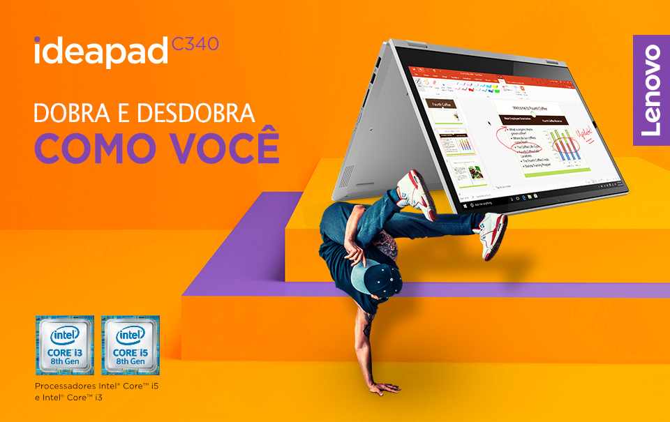 Equipado com a 8ª geração de processadores Intel® Core™, com SSD PCIe NVMe TLC 10x mais rápido* que um HDD 2.5” SATA e mais segurança para armazenar seus dados. O ideapad C340 é rápido, poderoso e responsivo! Perfeito para produtividade, criatividade e entretenimento.