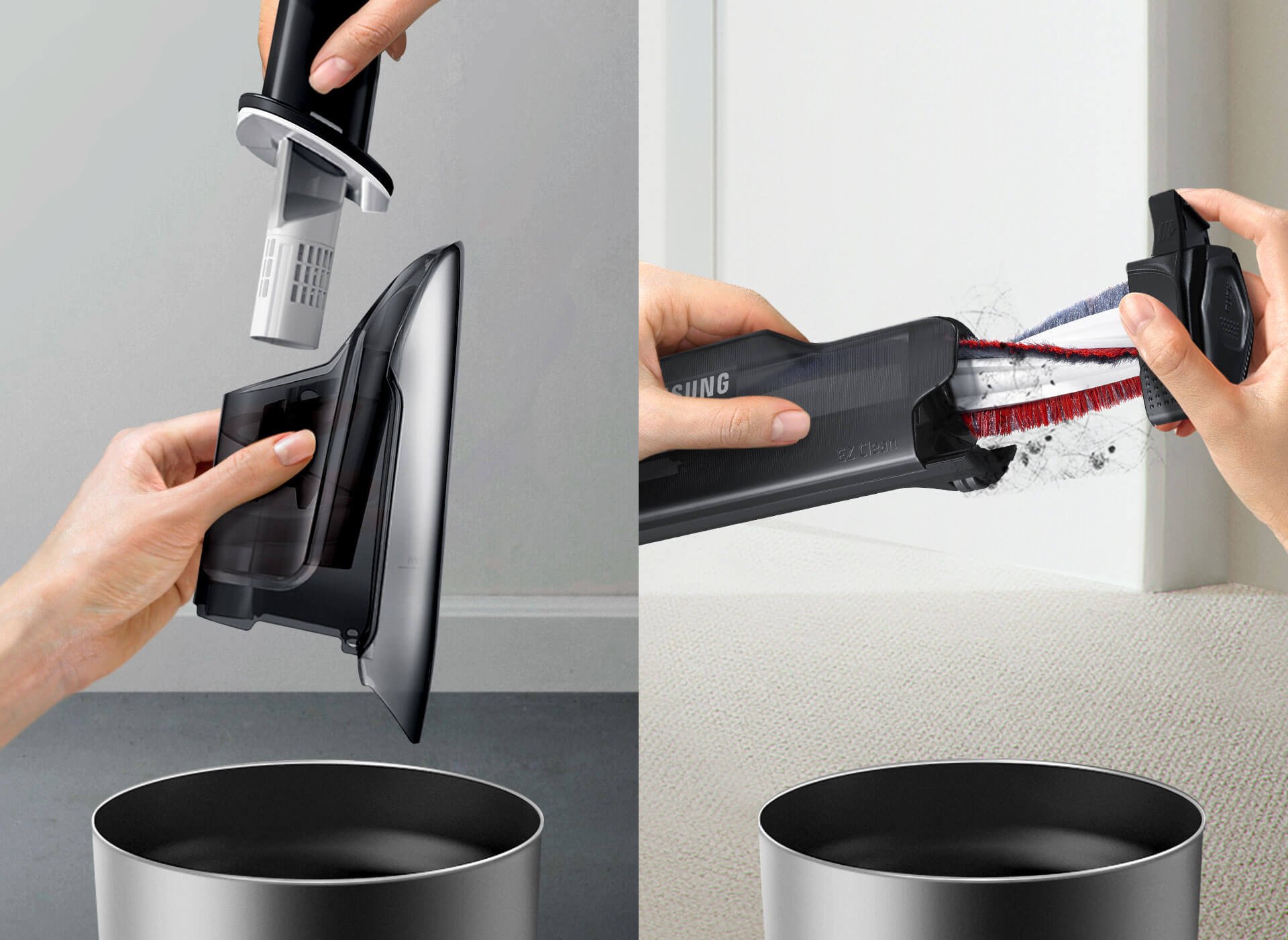 A tecnologia EZClean facilita a limpeza do compartimento de pó. Além disso, o Aspirador POWERstick VS6000K não possui saco para pó, permitindo que você remova a sujeira, detritos e cabelos presos de forma fácil e rápida. Para esvaziar o compartimento, basta puxar a alavanca e a escova sairá facilmente.