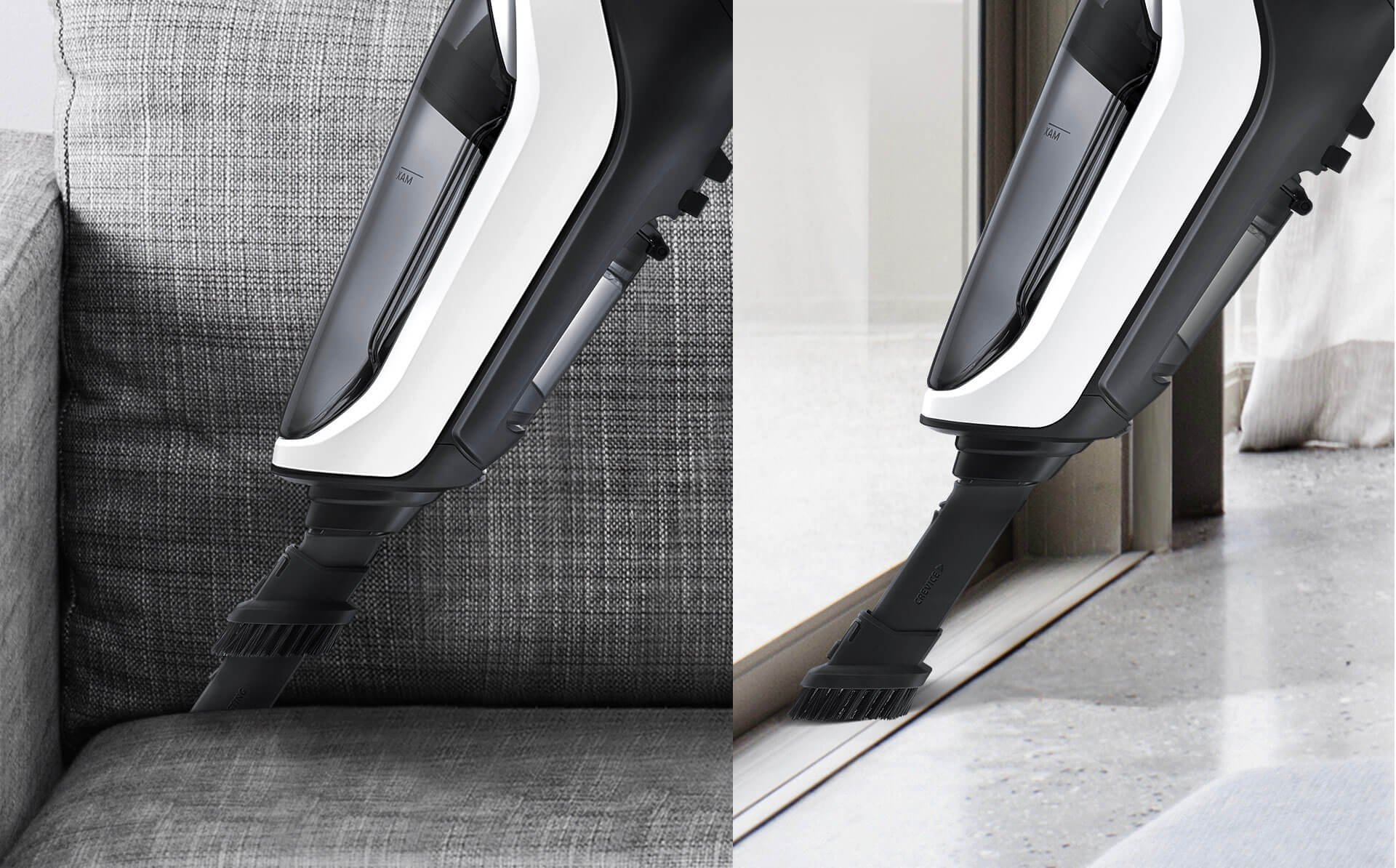 Os acessórios de limpeza ficam acoplados no cabo para melhor organização e facilidade de uso. Você pode facilmente trocar o acessório e continuar a limpeza sem perda de tempo. Uma ponteira para limpeza de frestas, quinas e rodapés. E uma escova de varredura para limpeza em áreas com maior relevo ou superfícies porosas.