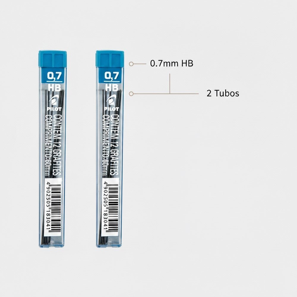 A Mina Pilot 0,7mm Grafite HB é uma escolha prática para quem usa lapiseira no dia a dia e quer um traço confiável do começo ao fim. A espessura 0,7mm oferece um equilíbrio excelente entre controle e agilidade, ajudando você a escrever e anotar com mais fluidez, sem perder legibilidade.