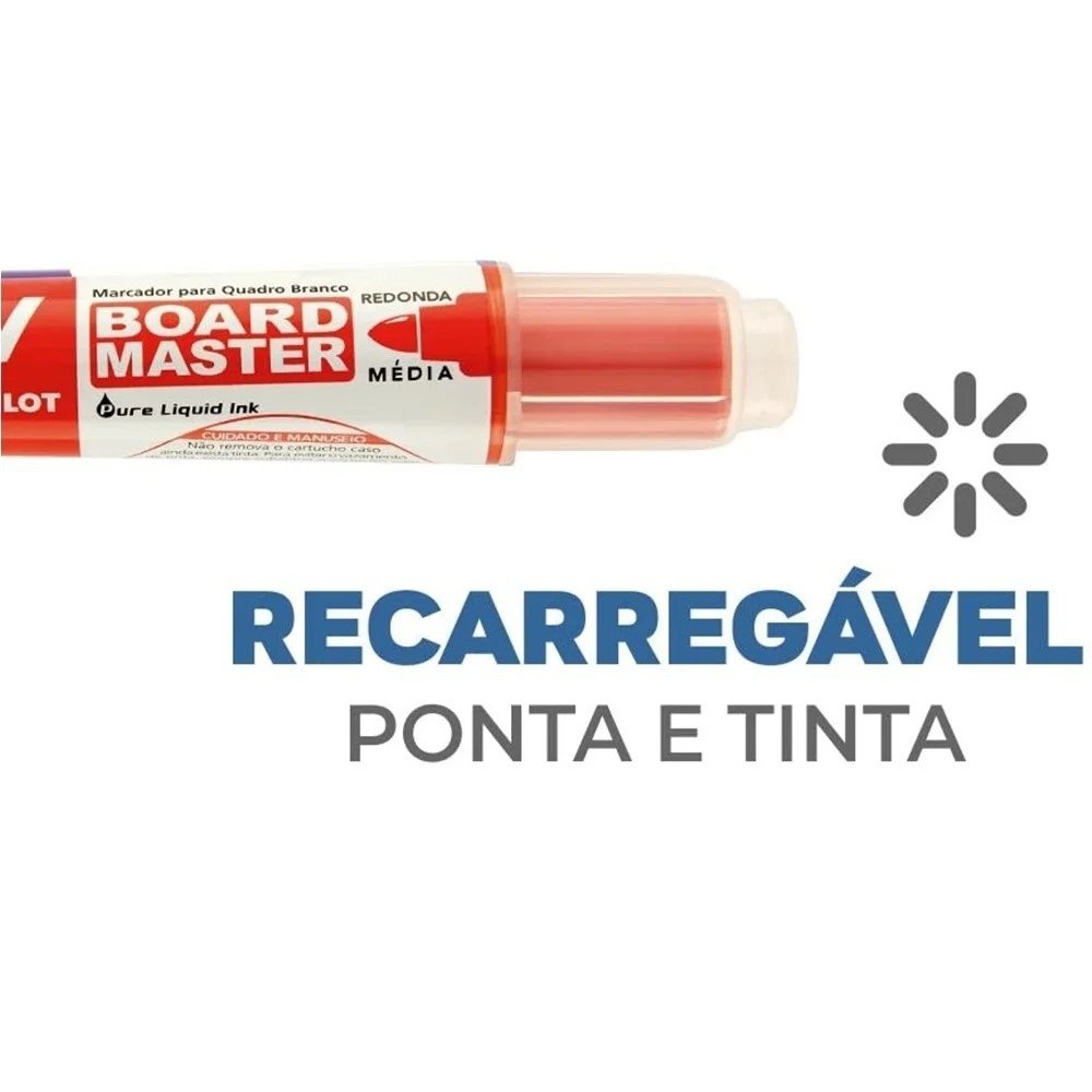 A cor vermelha ajuda a destacar títulos, alertas e pontos-chave, melhorando a leitura à distância e a organização visual do conteúdo no quadro. Por ser um modelo recarregável, ele favorece uma rotina mais contínua: quando a tinta acabar, você repõe e volta ao uso, mantendo o mesmo marcador em mãos.