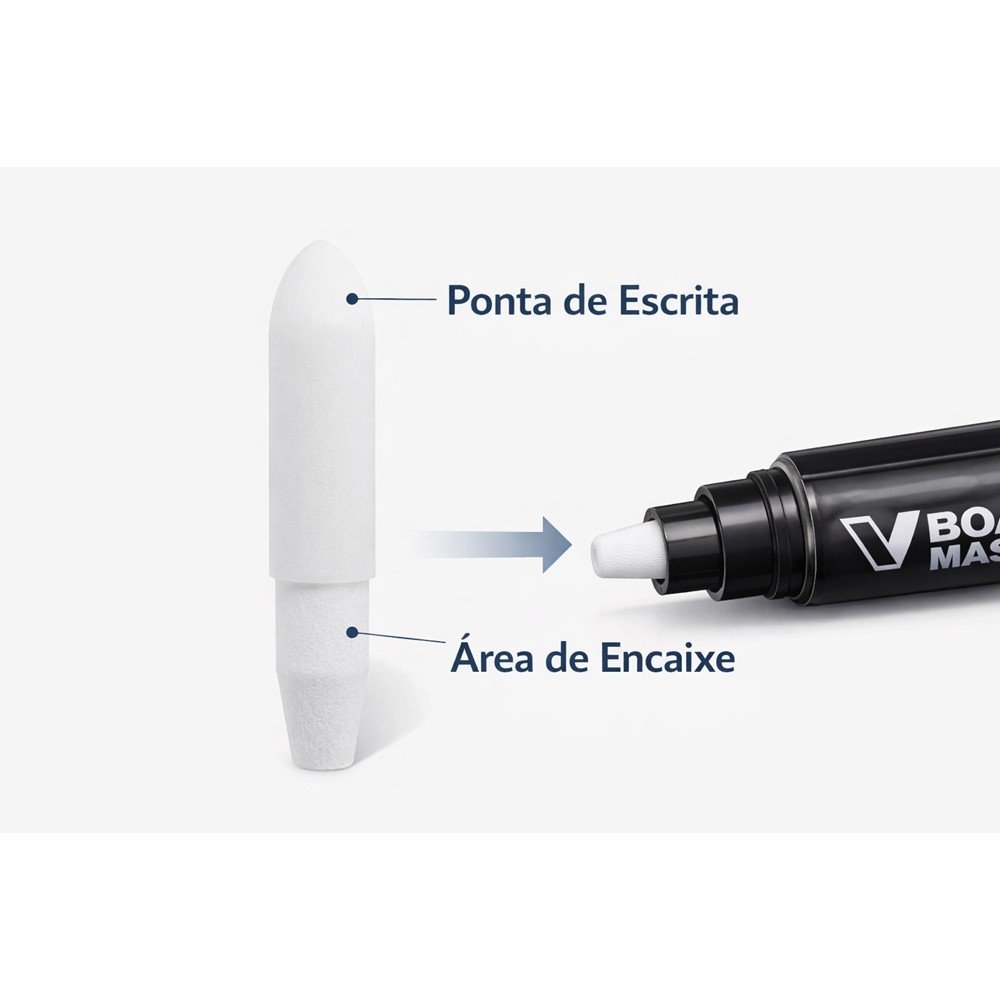 Com o uso diário, é normal a ponta do marcador perder o formato e prejudicar a escrita no quadro. A Ponta para Marcador de Quadro Branco Pilot V-Board Master WBMA foi feita para você repor quando precisar, mantendo o traço mais consistente e a experiência de uso mais agradável no trabalho, na escola ou em casa.