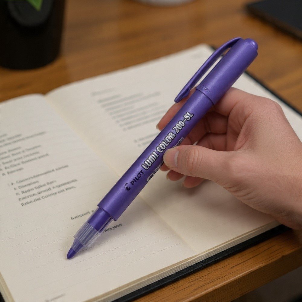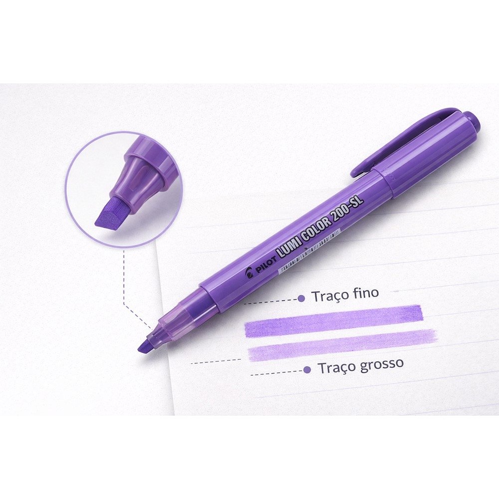 O Marca Texto Pilot Lumi Color 200-SL Roxo é a escolha certa para quem quer organizar informações com rapidez sem perder a leitura do que está no papel. A cor roxa ajuda a criar códigos visuais (por tema, prioridade ou matéria), deixando cadernos, apostilas e documentos muito mais fáceis de revisar.
