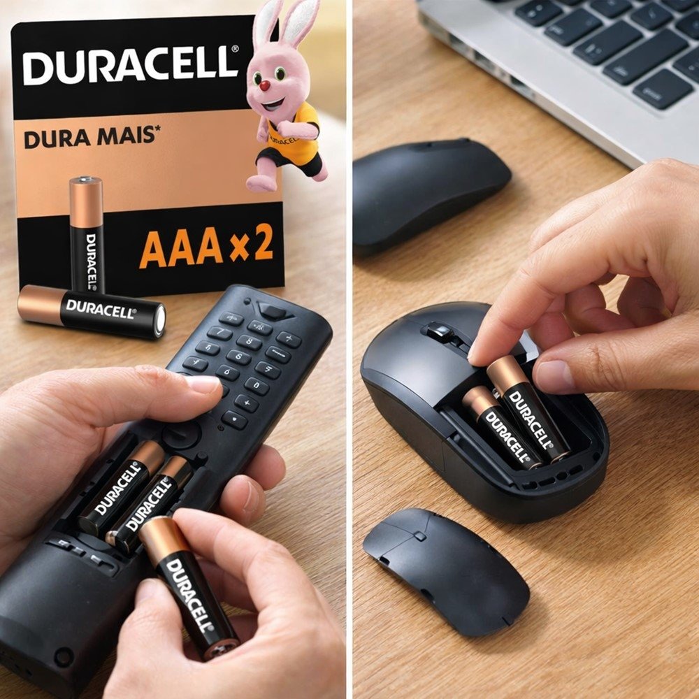 A Pilha Alcalina Duracell AAA Palito foi desenvolvida para oferecer energia estável, confiável e duradoura em dispositivos essenciais do dia a dia. Ideal para controles remotos, brinquedos, mouses, teclados sem fio, lanternas e diversos eletrônicos domésticos.