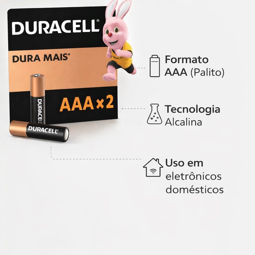 A Duracell é reconhecida mundialmente por seus rigorosos padrões de qualidade, garantindo uma pilha segura, confiável e compatível com os principais dispositivos que utilizam o formato AAA (palito).