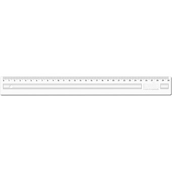 Com 30 cm de comprimento, ela atende a maior parte das tarefas de rotina - da sala de aula ao escritório - trazendo praticidade para traçar linhas e conferir medidas em poucos segundos. O material acrílico oferece um toque mais firme e uma sensação de produto bem-acabado para uso frequente.