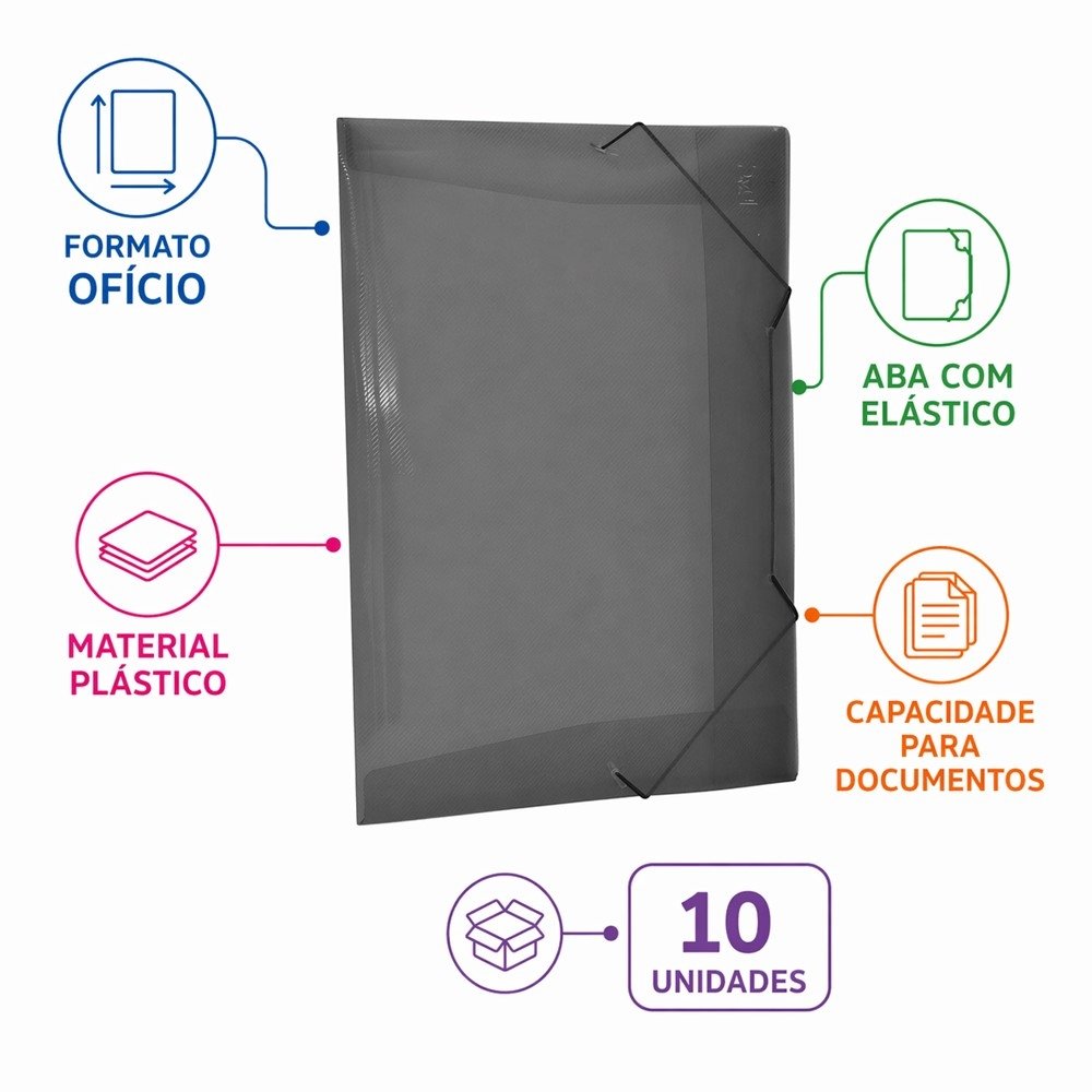 A aba de proteção reduz o risco de papéis escaparem ao abrir a pasta, e a cor fumê traz um visual discreto, ótimo para rotinas profissionais e organização por categorias. Como é um kit com 10 unidades, você consegue separar por assunto, cliente, disciplina ou tipo de documento, deixando sua organização mais clara e pronta para quando você precisar.