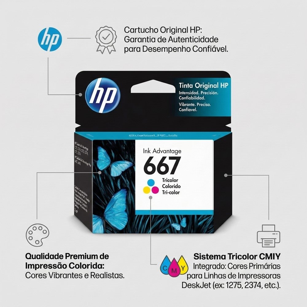 Conte com os cartuchos de tinta originais HP para obter desempenho de impressão. Ajude a garantir impressões nítidas e intensas em casa, na escola e no trabalho com cartuchos desenvolvidos e testados com a impressora HP e projetados para facilitar o uso.