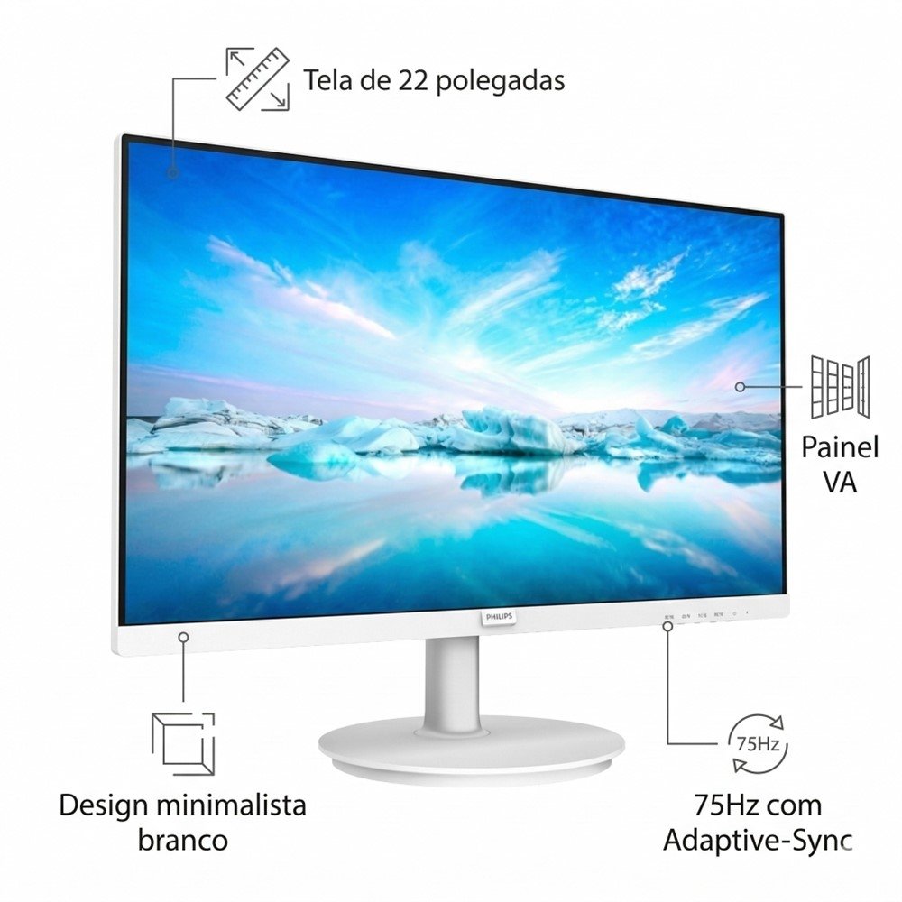 Monitor LED Philips 22" 221V8LW VA 75Hz - Imagem Confortável e Movimento Mais Suave