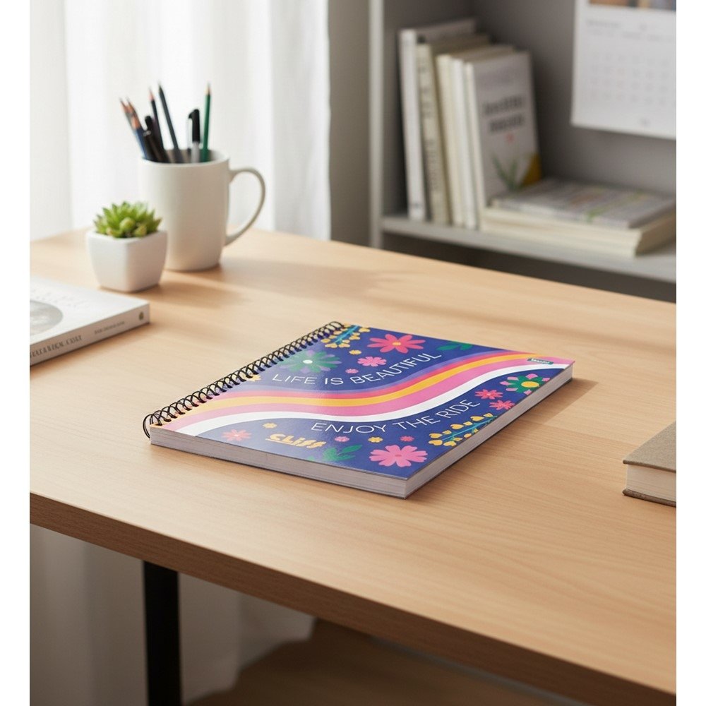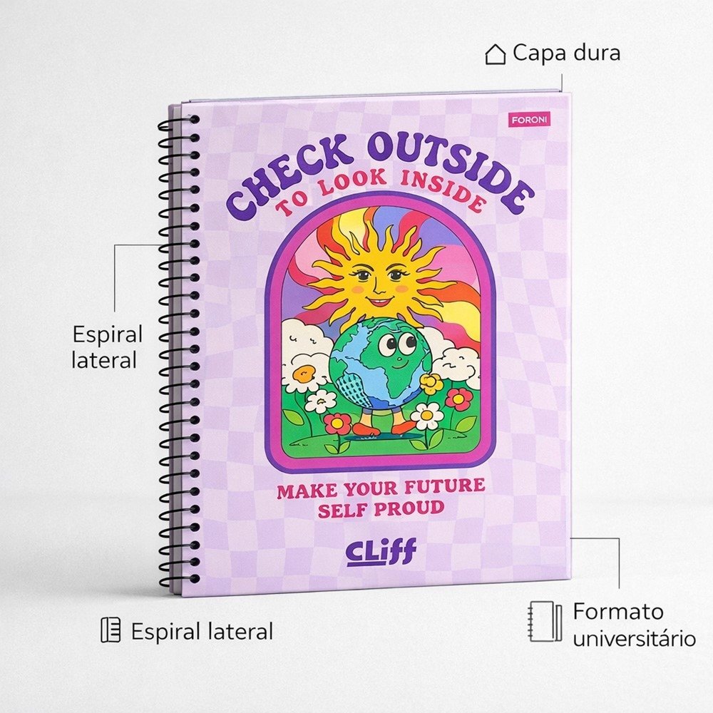 A capa dura garante resistência no dia a dia e protege bem as folhas dentro da mochila. Além disso, o formato universitário com espiral facilita o manuseio e a abertura completa para escrever com conforto.