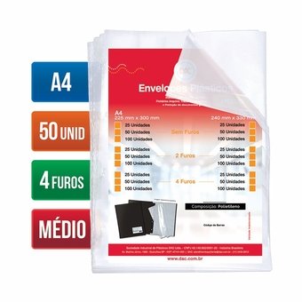 | Dados Complementares | - Médio e 4 furos. - Transparente - Espessura 0,10 micra |