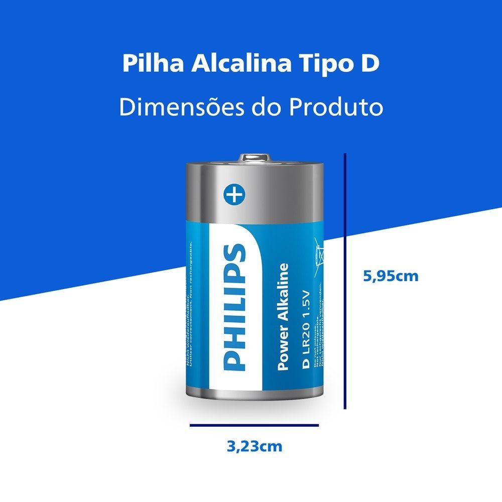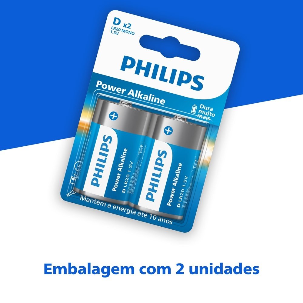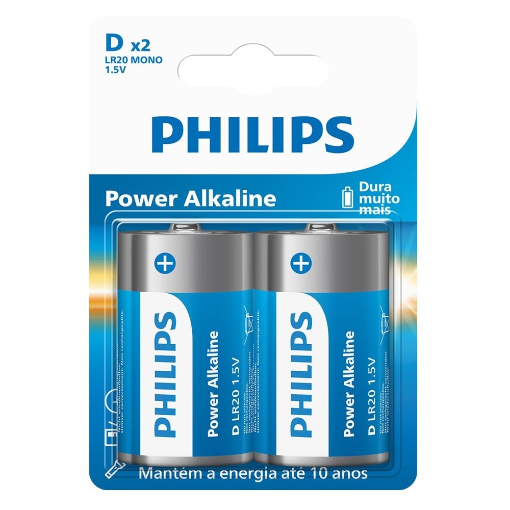 Conte com a Pilha Alcalina Philips Tipo D (LR20) 1.5V para alimentar aparelhos que pedem mais energia e estabilidade no dia a dia. Ideal para usos contínuos e equipamentos maiores, ela ajuda você a manter tudo funcionando sem sustos - do momento de lazer em casa até a rotina de cuidados e segurança.