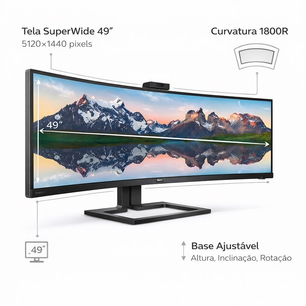Com o design em acabamento preto e proposta voltada à produtividade, o Philips 499P9H é uma escolha certeira para escritórios, home office e ambientes corporativos que buscam uma tela ampla e uma experiência mais eficiente no uso diário.