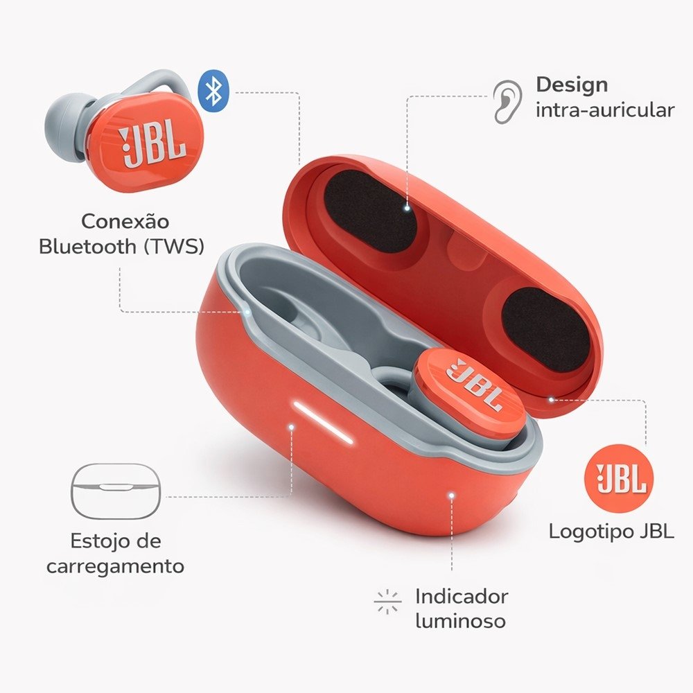 O grande diferencial aqui é a experiência: encaixe firme e confortável para acompanhar exercícios e deslocamentos, além da praticidade do formato TWS (True Wireless), que facilita guardar, transportar e usar em qualquer momento. A cor coral traz um visual moderno, fácil de reconhecer e com personalidade - sem abrir mão da proposta esportiva da linha Endurance.