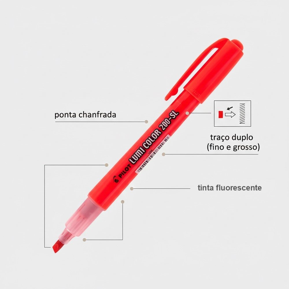 O Marca-Texto Pilot Lumi Color 200-SL Vermelho é a escolha certa para quem quer organizar informações com clareza e ganhar agilidade no estudo, no trabalho e na rotina. A cor vermelha ajuda a criar prioridade visual, facilitando encontrar rapidamente os pontos mais importantes em anotações, apostilas, relatórios e planejamentos.