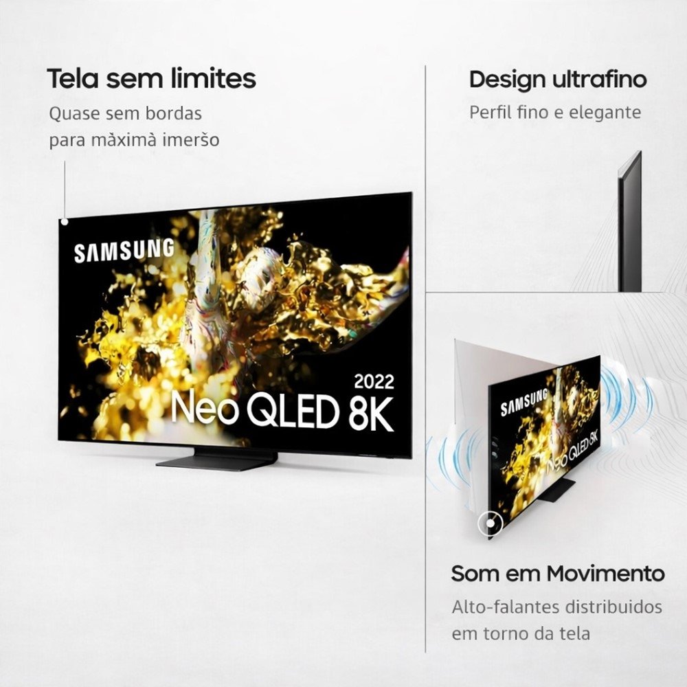 Leve para a sua sala uma TV feita para impressionar em cada detalhe: a Smart TV Samsung 55" QN700B QLED 8K combina imagem de altíssima definição com um visual sofisticado e minimalista. O resultado é uma experi ência mais imersiva para filmes, séries, esportes e games - com uma tela que chama atenção pelo conteúdo, não pelas bordas.