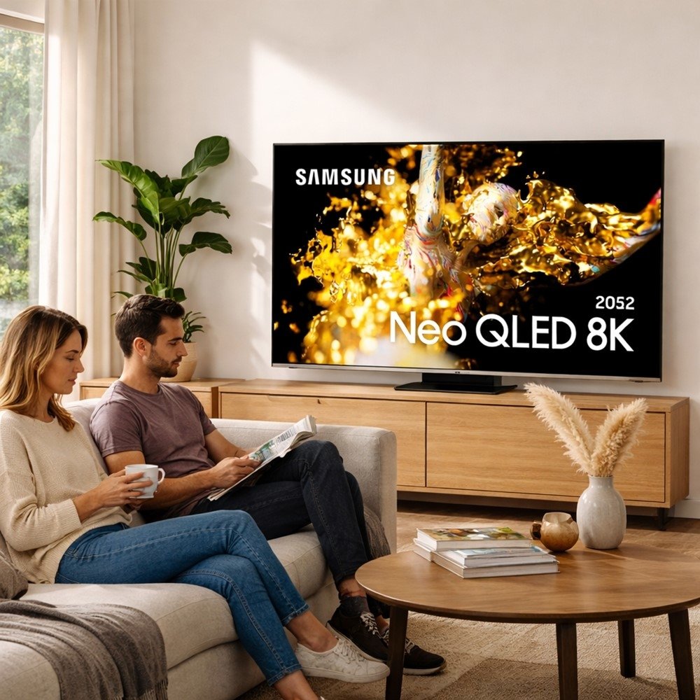 A tecnologia QLED entrega cores vibrantes e uma imagem mais rica para o dia a dia, enquanto a resolução 8K coloca você mais perto dos detalhes nas cenas. E para facilitar sua rotina, o processador com IA trabalha para otimizar a exibição do que você assiste, ajudando a manter a qualidade em diferentes tipos de conteúdo e aplicativos.
