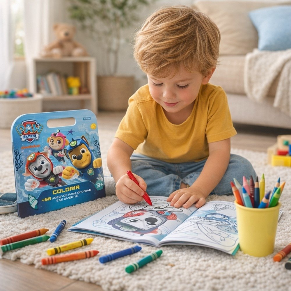 O Álbum Colorir Maleta Patrulha Canina com 8 Folhas foi feito para transformar momentos simples em uma brincadeira envolvente, com o universo que as crianças adoram. A proposta é direta: colorir, se divertir e levar junto, seja em casa, em passeios ou em visitas à família.