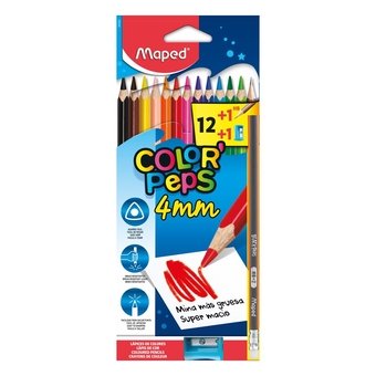 O Kit Lápis de Cor Maped Color Peps foi pensado para deixar o momento de desenhar e colorir mais prático e prazeroso, com um conjunto que já vem pronto para o dia a dia: 12 lápis de cor, 1 apontador e 1 lápis grafite.