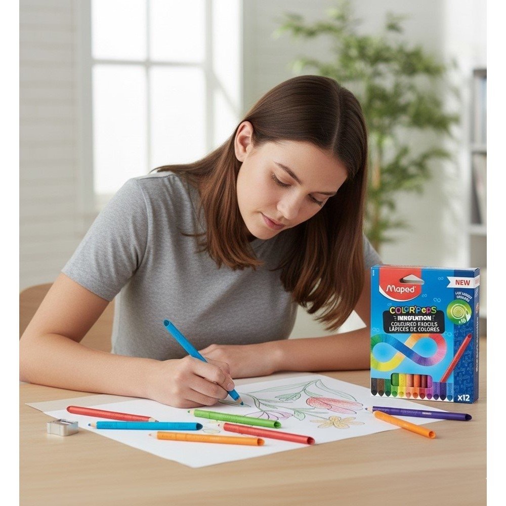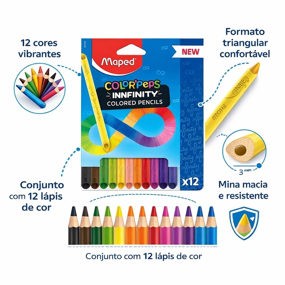 O Lápis de Cor Maped Color'Peps Infinity 12 Cores é feito para quem desenha, pinta e estuda com frequência e quer uma experiência mais prática no dia a dia. A proposta da linha Infinity é simples: mais tempo de uso com menos desperdício, ajudando você a manter o ritmo das atividades sem interrupções desnecessárias.