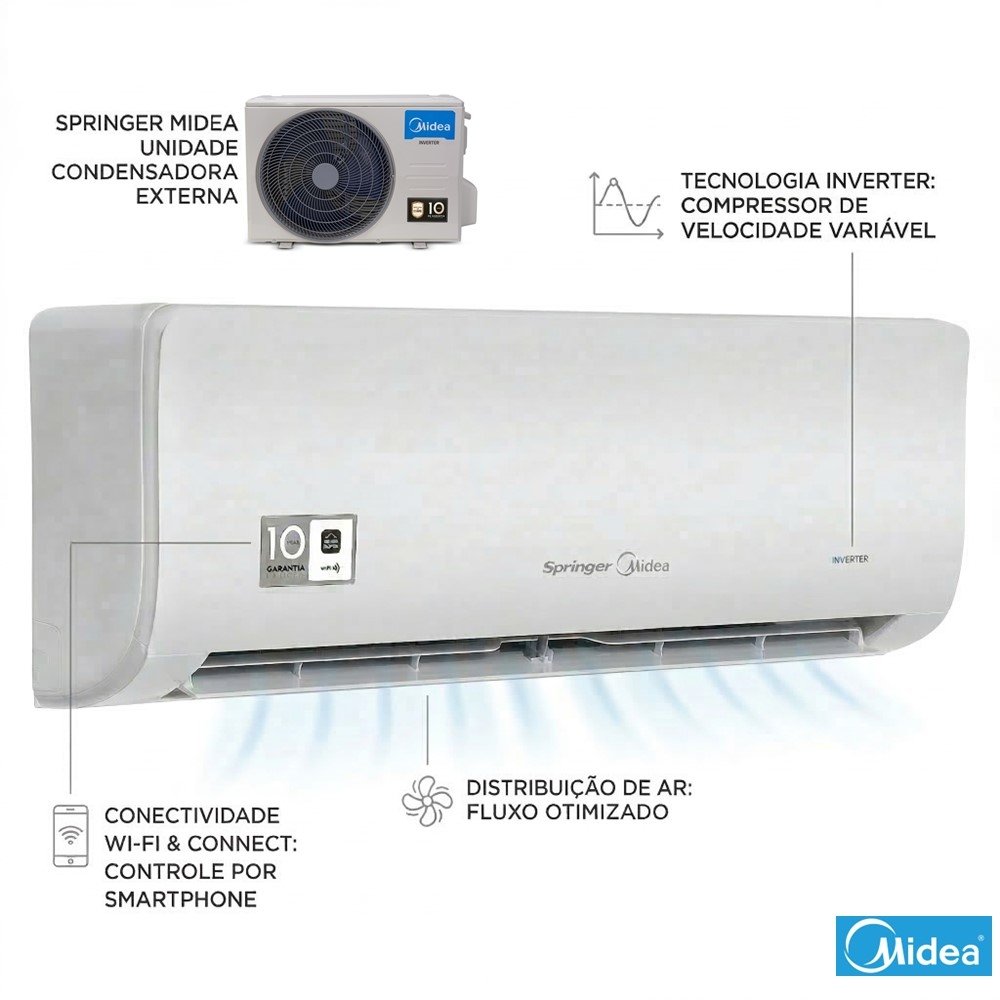 Quando o calor aperta, você precisa de um ar-condicionado que entregue potência de refrigeração e, ao mesmo tempo, ajude a manter o uso mais eficiente no dia a dia. O Springer Midea Split Hi Wall 30000 BTUs Xtreme Save Connect Inverter (Frio) 220V foi pensado para quem busca conforto consistente em ambientes maiores, com uma experiência mais estável de climatização.