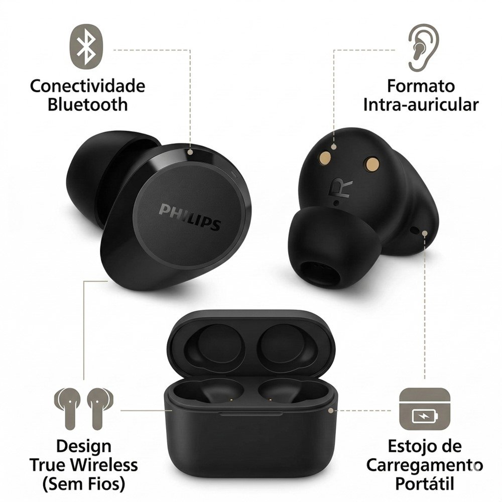 Fone de Ouvido Philips TWS Bluetooth Preto - Liberdade Sem Fios e Praticidade no Dia a Dia