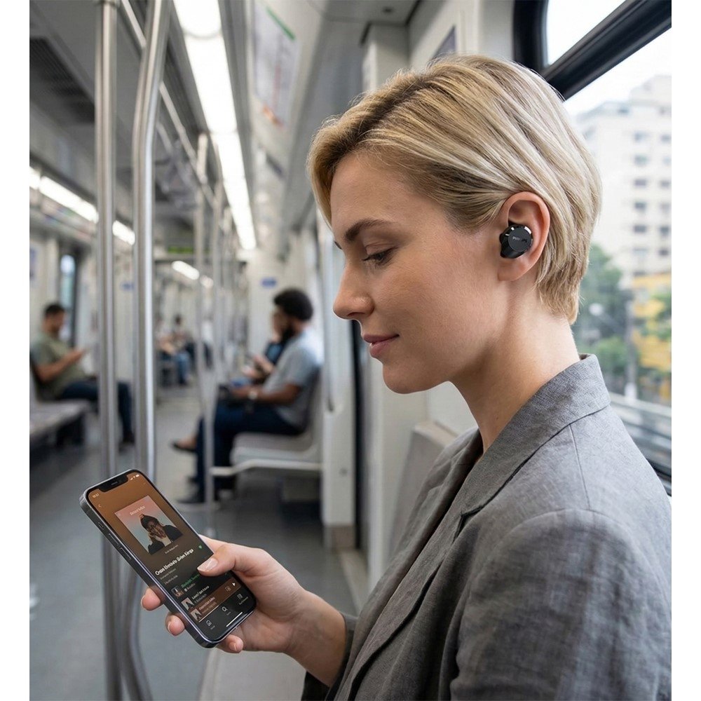 O formato true wireless (TWS) elimina de vez os cabos e deixa sua rotina mais simples: colocou, conectou e pronto. Ideal para quem busca um fone para acompanhar a correria com mais conforto e organização, sem depender de fio enroscando na roupa ou prendendo na bolsa.