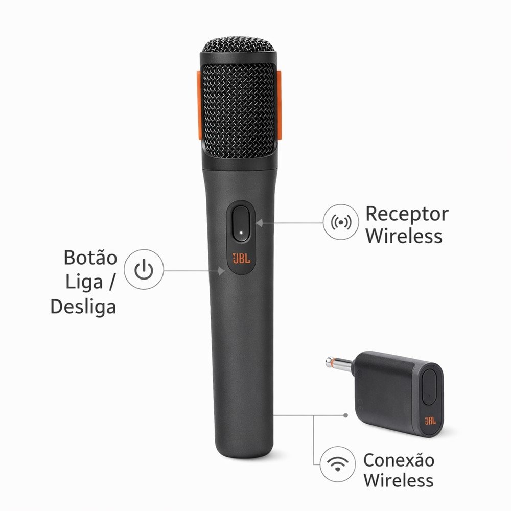 O Microfone JBL Wireless PartyBox foi desenvolvido para quem quer transformar qualquer encontro em um verdadeiro show. Compatível com caixas da linha JBL PartyBox, ele oferece liberdade sem fio para cantar, animar e interagir sem limitações de movimento.