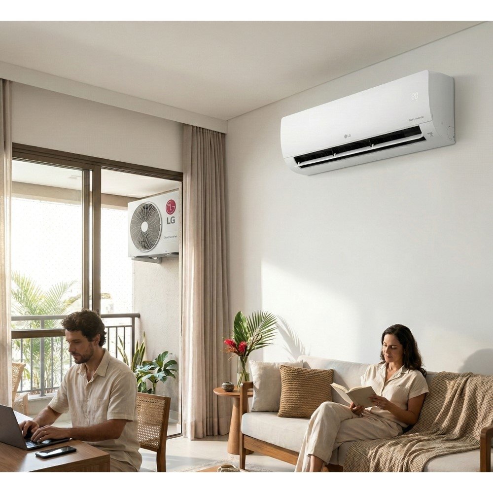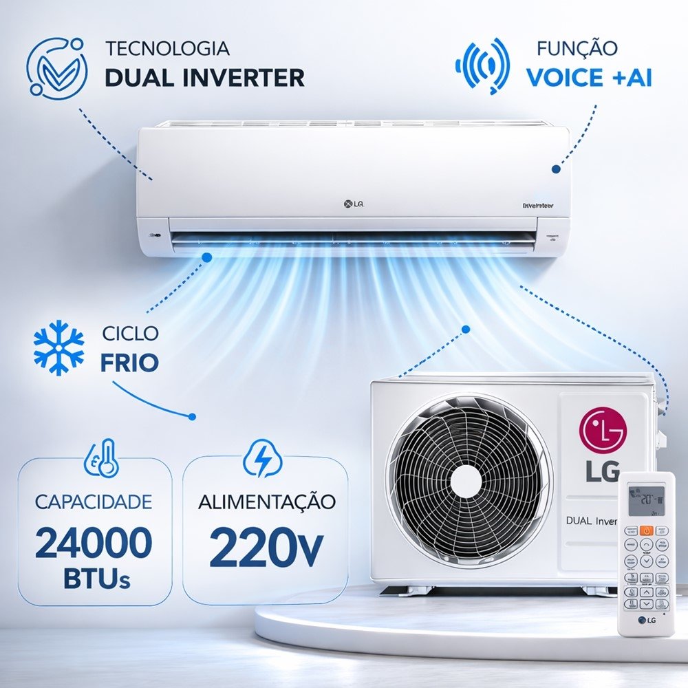 Com o Ar-Condicionado LG Split Hi Wall 24000 BTUs Dual Inverter Voice +AI (Frio), você deixa o ambiente mais agradável de um jeito simples e inteligente. A capacidade de 24000 BTUs é indicada para quem busca conforto térmico em espaços maiores, reduzindo aquela sensação de ar "pesado" e ajudando a manter a temperatura mais estável ao longo do dia.