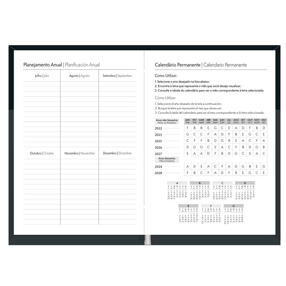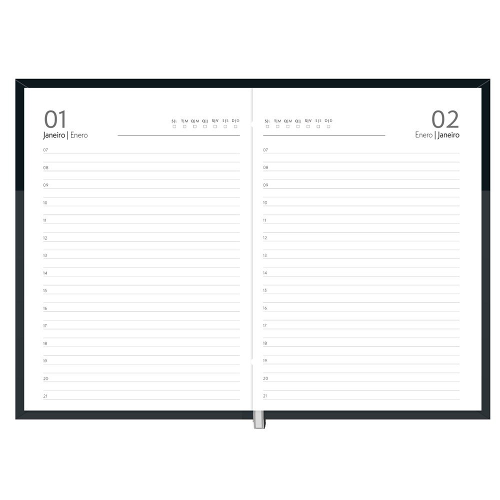 | Dados Adicionais | - Laminação Fosca - Gofragem - Miolo Costurado - Fitilho - Miolo permanente com um dia por página. |
