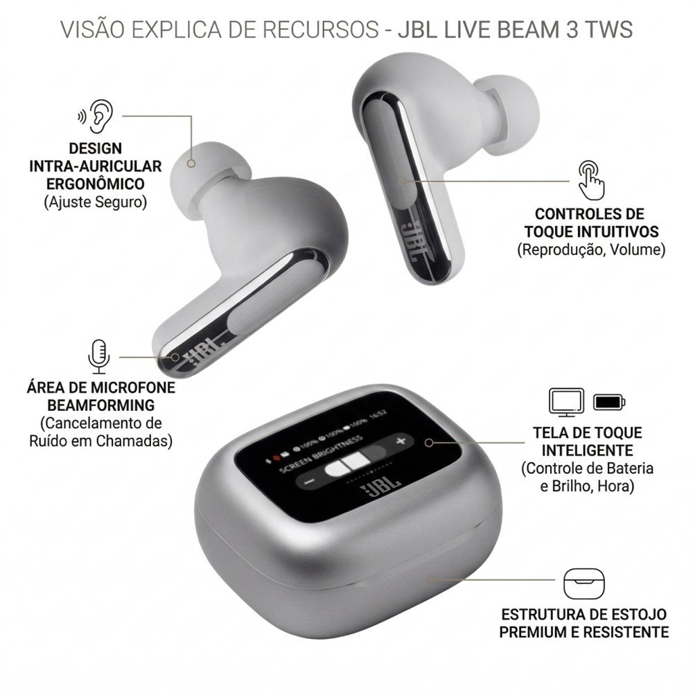 O JBL Live Beam 3 TWS foi feito para quem quer ouvir música, podcasts e atender chamadas com liberdade total - sem cabos, sem complicação e com a assinatura de som de uma marca reconhecida no áudio. É o tipo de fone que combina com a rotina: sair de casa, trabalhar, treinar ou relaxar, mantendo o som sempre por perto.