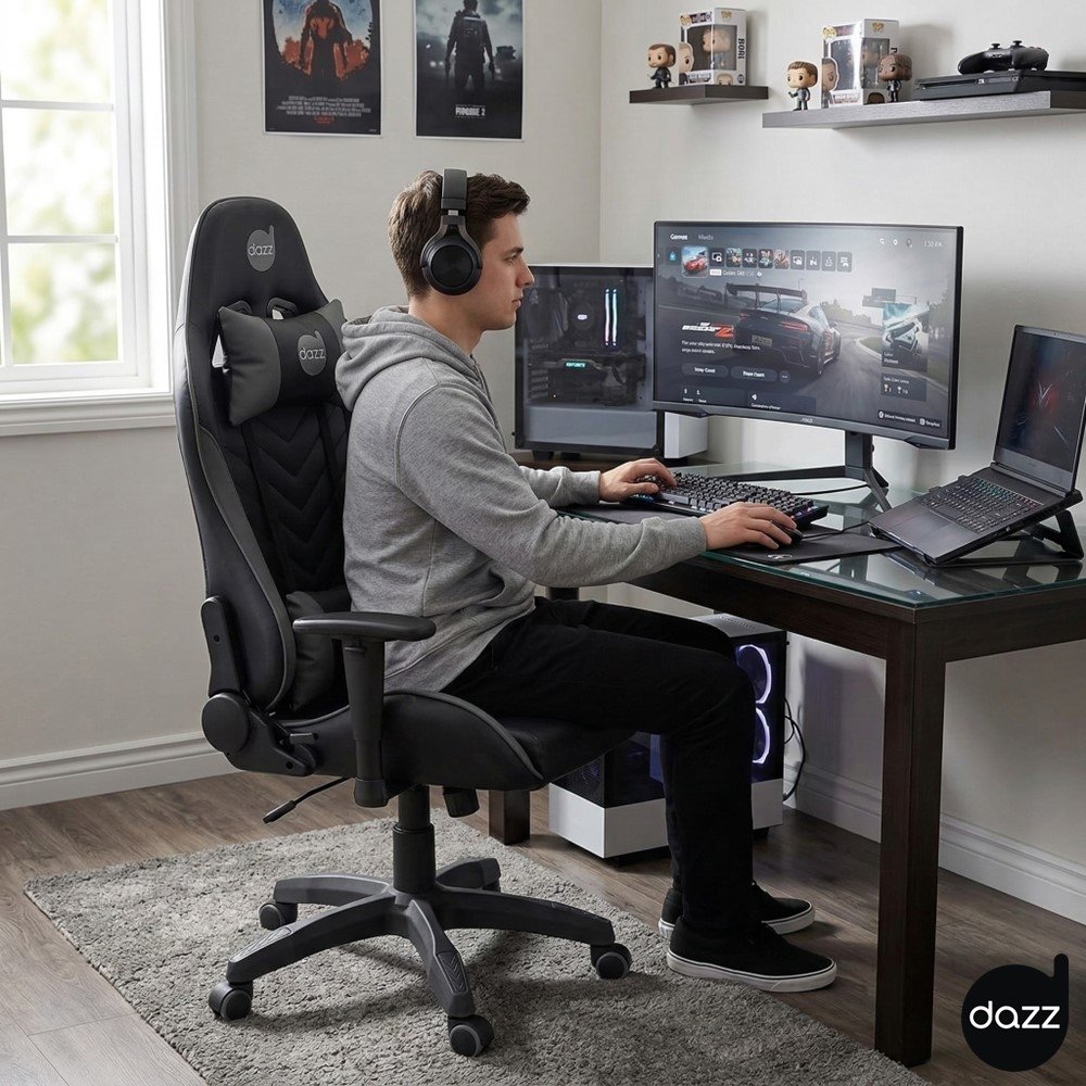 A Cadeira Gamer Dazz Elite Pro Preto/Cinza foi feita para quem passa muito tempo no setup e quer uma experiência mais confortável e segura no dia a dia. O design gamer traz um visual marcante para o ambiente, enquanto a proposta do modelo é oferecer apoio e estabilidade para você manter o foco em partidas, estudos ou trabalho.