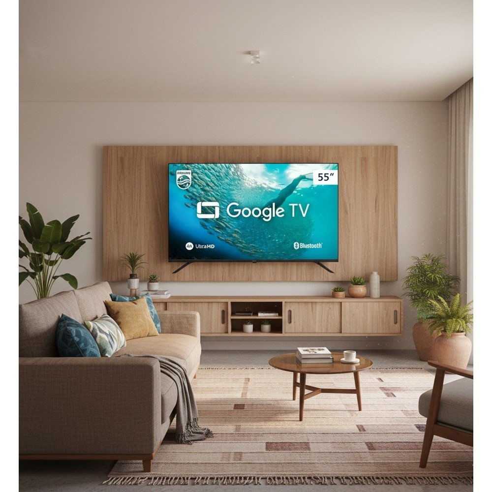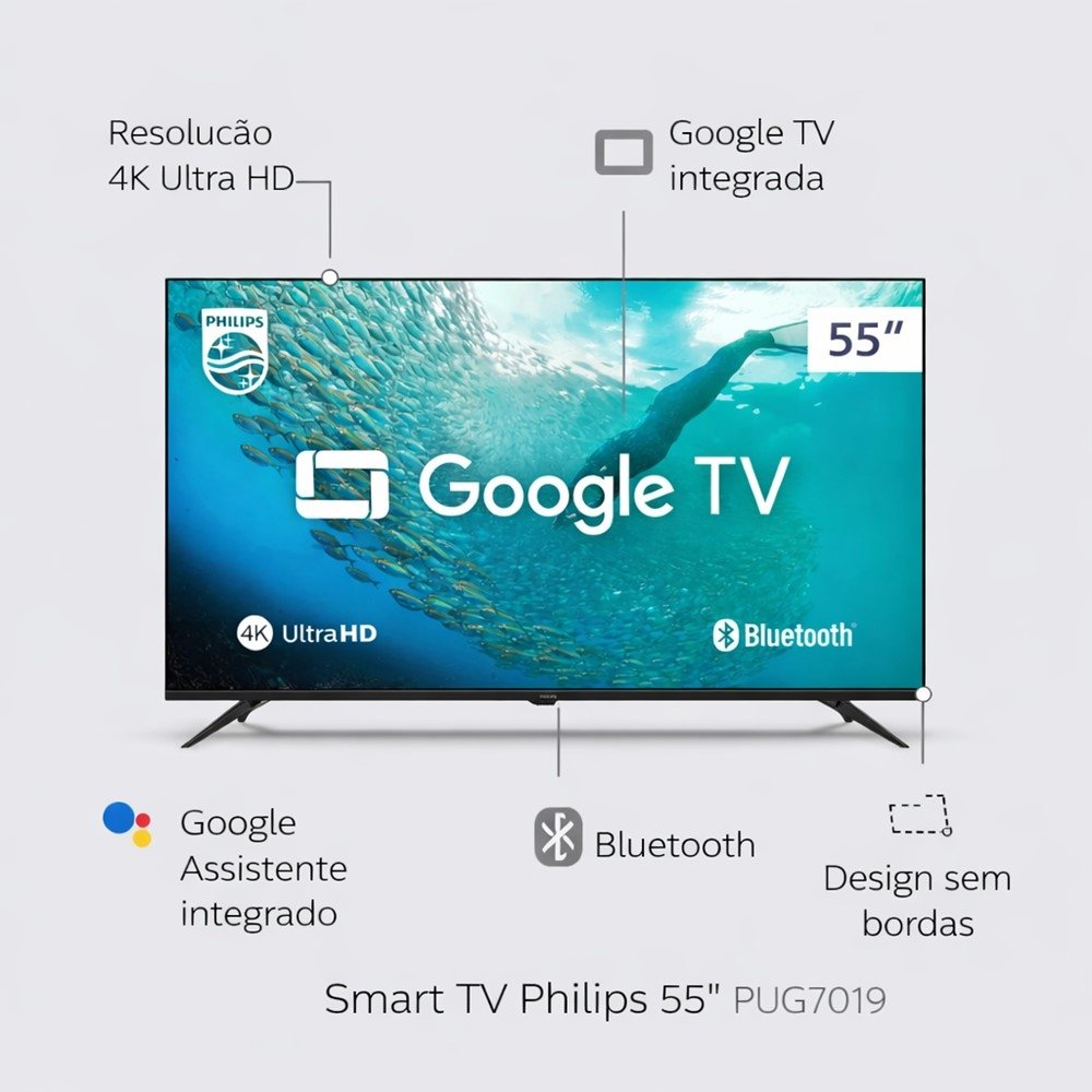 Smart TV Philips 55" 4K UHD Google TV - Imagem HDR, Comando de Voz e Visual sem Bordas