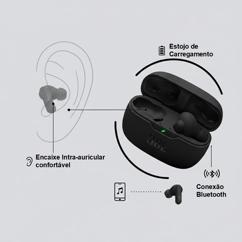 O JBL Wave Beam 2 TWS foi criado para quem busca praticidade, conforto e a assinatura sonora JBL em um fone verdadeiramente sem fios. Ideal para o dia a dia, ele entrega uma experiência sonora envolvente, sem cabos e sem complicações.