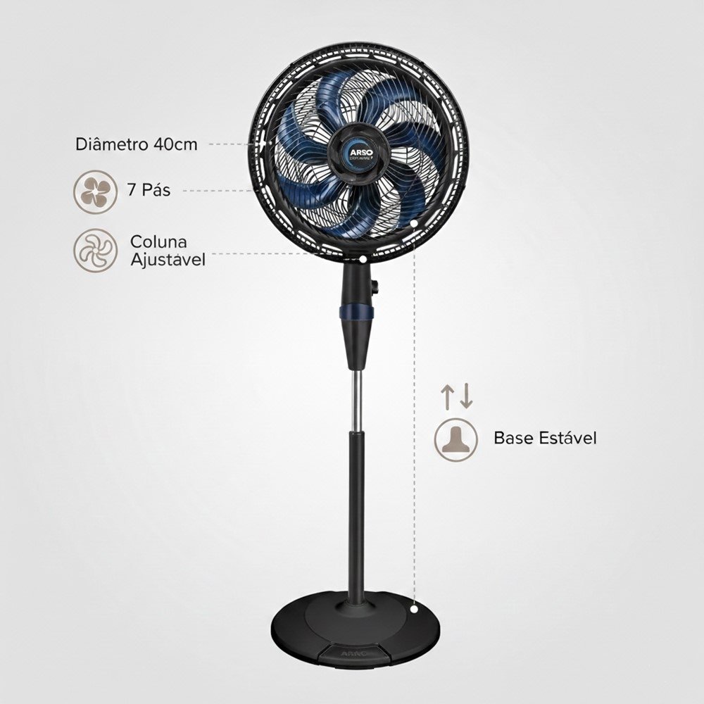 O formato de coluna com ajuste de altura ajuda a direcionar o vento exatamente para onde faz sentido: na cama, no sofá, na mesa de trabalho ou no home office. Assim, você evita "vento perdido" e ganha mais conforto no uso real, ao longo do dia.