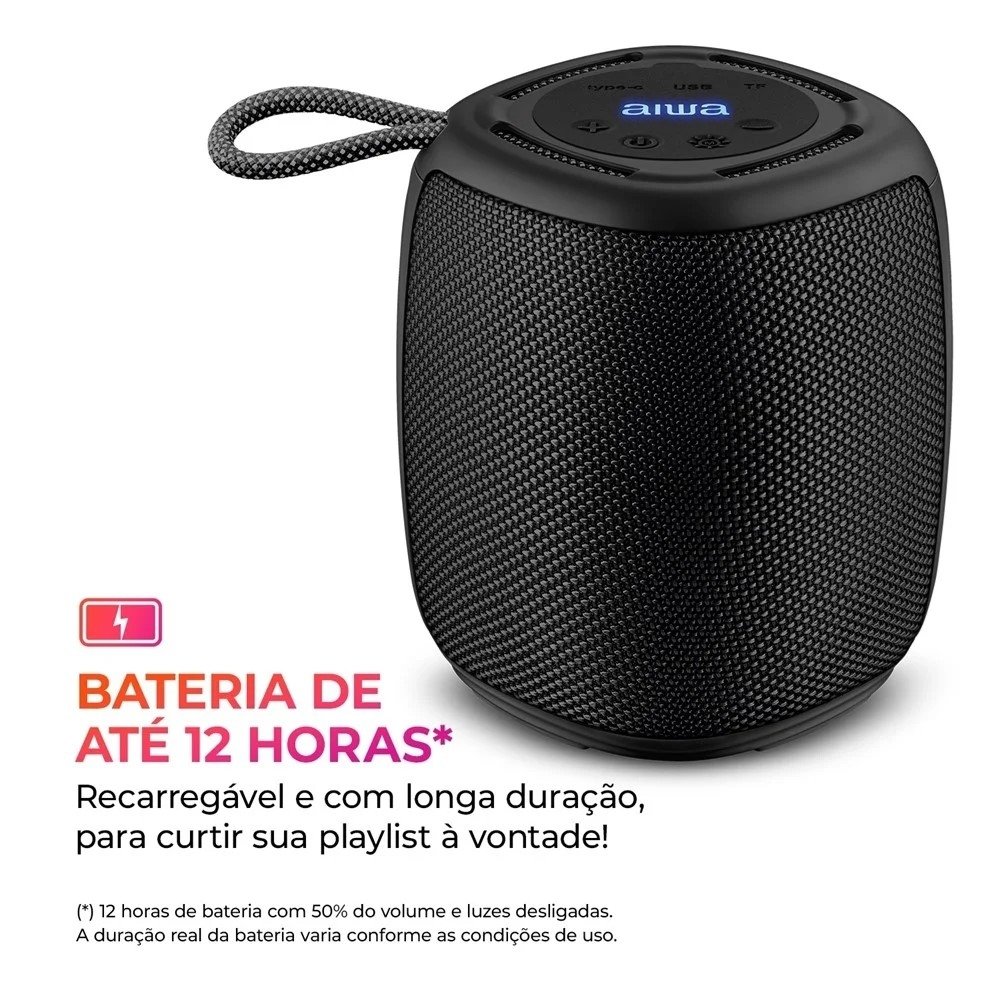 A Caixa de Som AIWA SP-O3-B é a escolha certa para quem quer som mais forte com a praticidade do Bluetooth no dia a dia. Com 15W de potência, ela entrega presença sonora para curtir músicas, podcasts e vídeos com mais impacto - seja no quarto, na sala, no home office ou em encontros com amigos.
