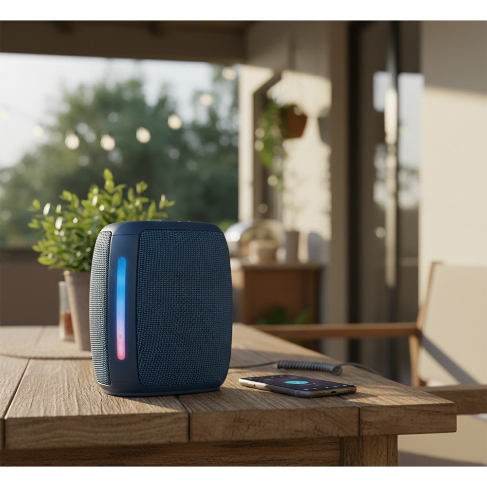 Com visual moderno na cor azul, é uma opção certeira para quem busca uma caixa de som compacta e funcional, pensada para acompanhar momentos simples - e deixar tudo mais agradável com som de verdade.