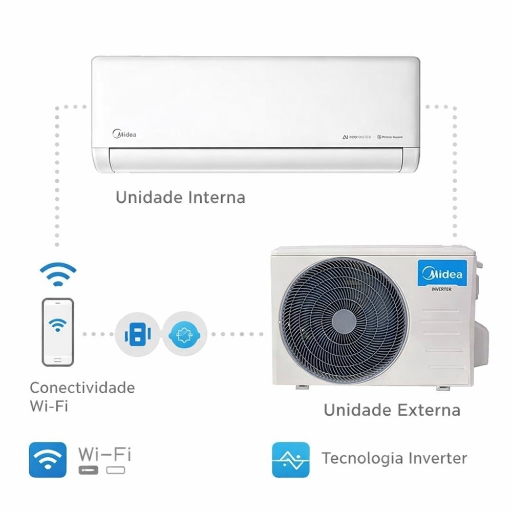 Com a linha AI Ecomaster Connect, você ganha um diferencial importante para a rotina: conectividade para ajustar funções com mais conveniência (ideal para chegar em casa e encontrar o clima do jeito que você gosta, ou para fazer ajustes sem interromper o que está fazendo).
