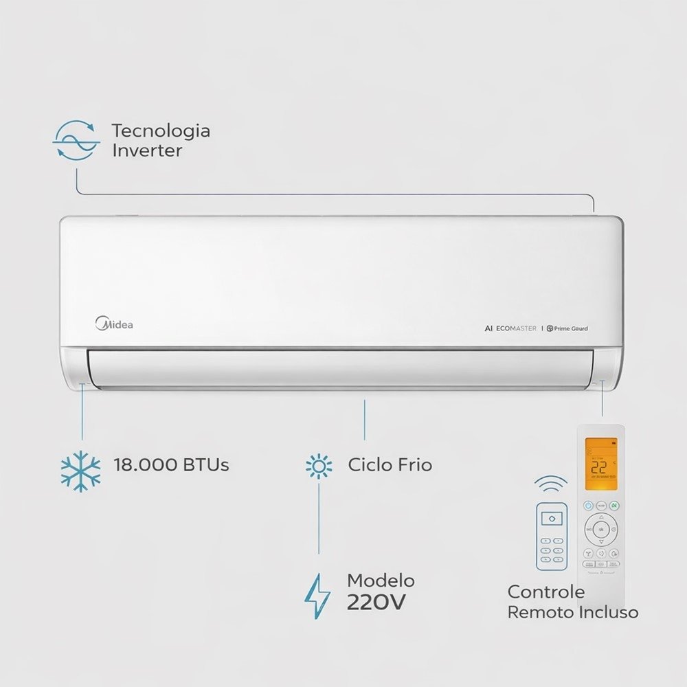 Tenha mais conforto nos dias quentes com o Ar-Condicionado Split 18.000 BTUs Springer Midea AI Ecomaster Connect, pensado para quem quer uma casa mais agradável sem complicação. Com a tecnologia Inverter, ele ajuda a manter a temperatura com mais estabilidade, contribuindo para reduzir picos de consumo e evitando aquele "liga e desliga" constante.