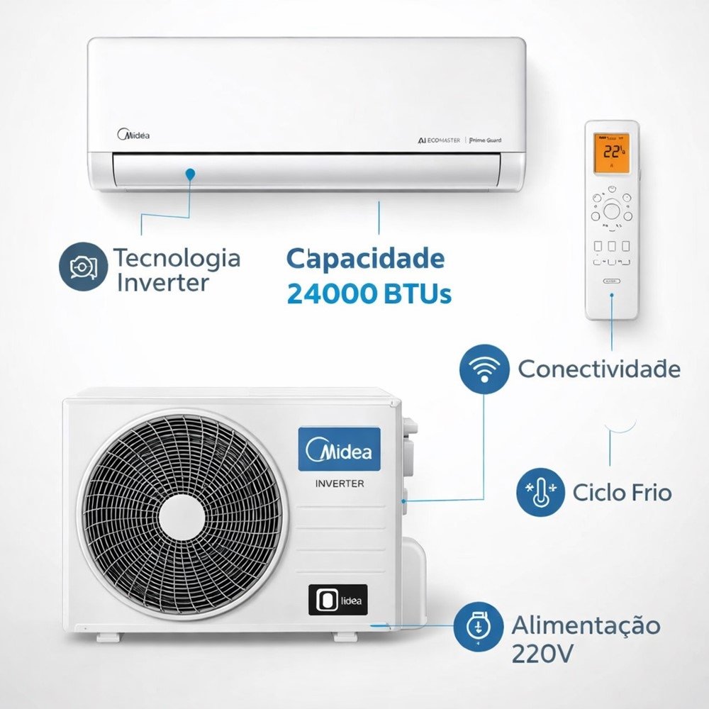 O Ar-Condicionado Split 24000 BTUs Springer Midea foi pensado para quem quer conforto térmico rápido e uma rotina mais prática, sem complicação. Com capacidade de 24000 BTUs, ele é uma ótima escolha para ambientes amplos, ajudando você a manter a sensação de frescor mesmo nos dias mais quentes.