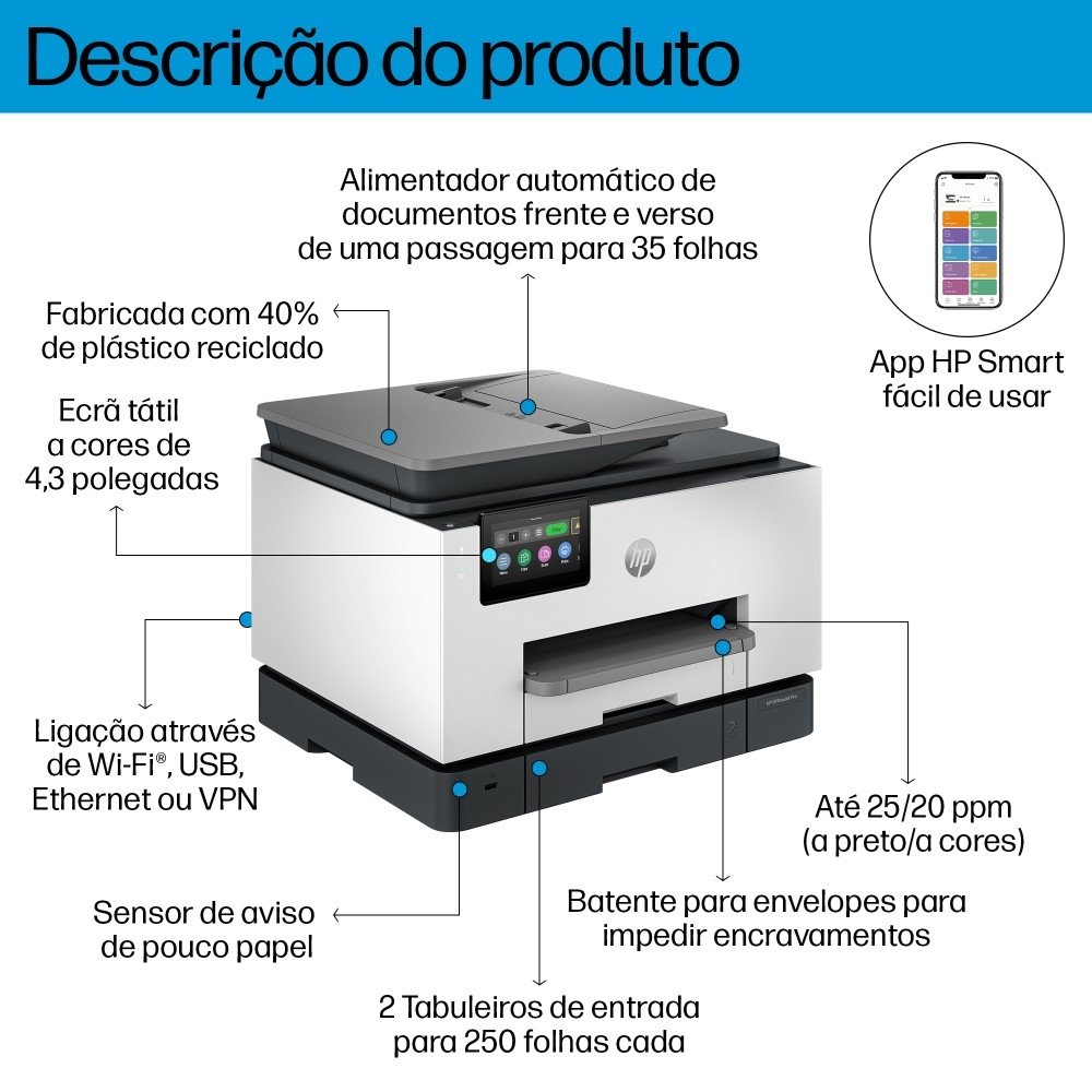 | Código Suprimentos | 4S6X8PL Cartucho HP 938 Preto; 4S6X5PL Cartucho HP 938 Ciano; 4S6X6PL Cartucho HP 938 Magenta; 4S6X7PL Cartucho HP 938 Amarelo. 4S6W2NE Tinteiro HP Original 937 Ciano; 4S6W3NE Tinteiro HP Original 937 Magenta; 4S6W4NE Tinteiro HP Original 937 Amarelo; 4S6W5NE Tinteiro HP Original 937 Preto. |