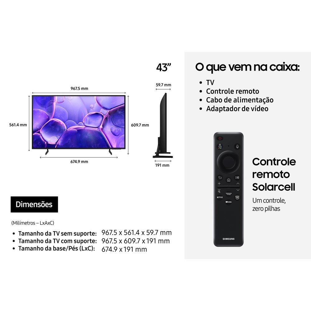 | Tamanho da Tela (Polegadas) | 43" |
