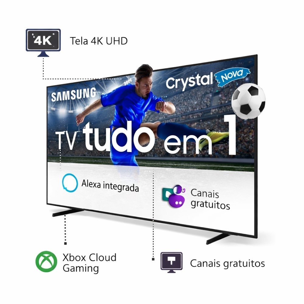 A Smart TV Samsung 50" Crystal UHD 4K U8600F 2025 foi feita para quem quer uma experiência moderna e prática no dia a dia: imagem em 4K, recursos smart e acesso facilitado ao entretenimento - do streaming ao Xbox Cloud Gaming diretamente na TV.