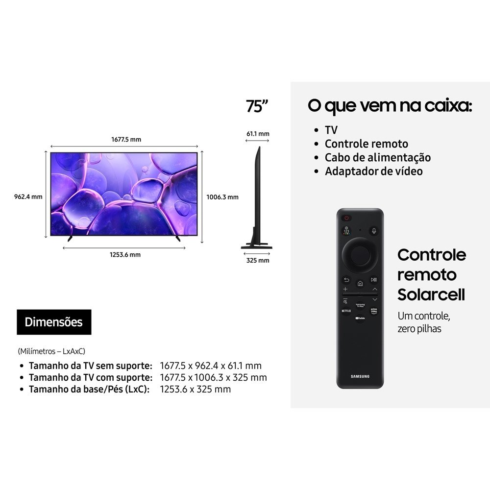 | Funções | - Bixby - Assistente de Voz Integrado - Samsung TV Plus - Samsung Gaming Hub - App Xbox Cloud Gaming - App NVidia GeForce Now - Navegador (Web Browser) - Experiência de Múltiplos Dispositivos - Controle Por Gestos - Compartilhamento de Dados entre Dispositivos - Apple AirPlay - Hub Daily+ - Auto Game Mode ALLM - Gaming Hub |