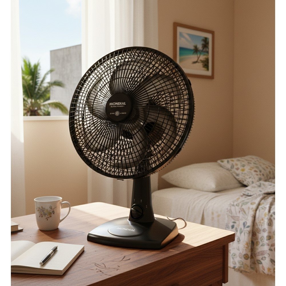 O conjunto com 6 pás contribui para uma sensação de ventilação mais presente no ambiente - ideal para usar enquanto você estuda, trabalha, assiste TV ou descansa. E como é um modelo de mesa, você posiciona onde precisa: no quarto, na sala, no escritório ou ao lado da cama, ajustando a ventilação para o seu conforto.