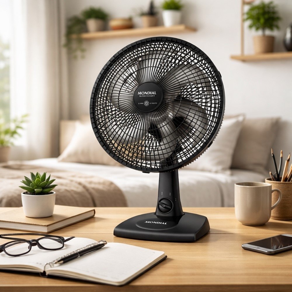 A proposta é simples: vento mais perceptível com um ventilador compacto, que cabe bem em mesas e apoios, ajudando você a direcionar o ar para onde faz mais diferença. O acabamento na cor preta combina com diferentes ambientes, mantendo um visual discreto e fácil de harmonizar.
