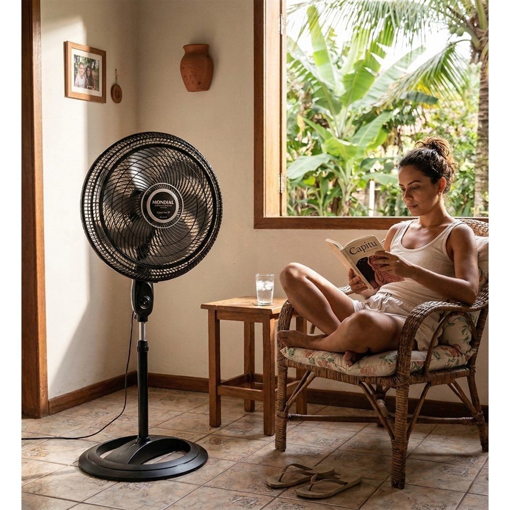 Por ser um modelo de coluna, você ajusta a altura para direcionar o vento onde faz mais diferença - no sofá, na cama ou na mesa. O resultado é uma sensação de bem-estar mais rápida e um uso mais prático no dia a dia, sem depender de instalação.