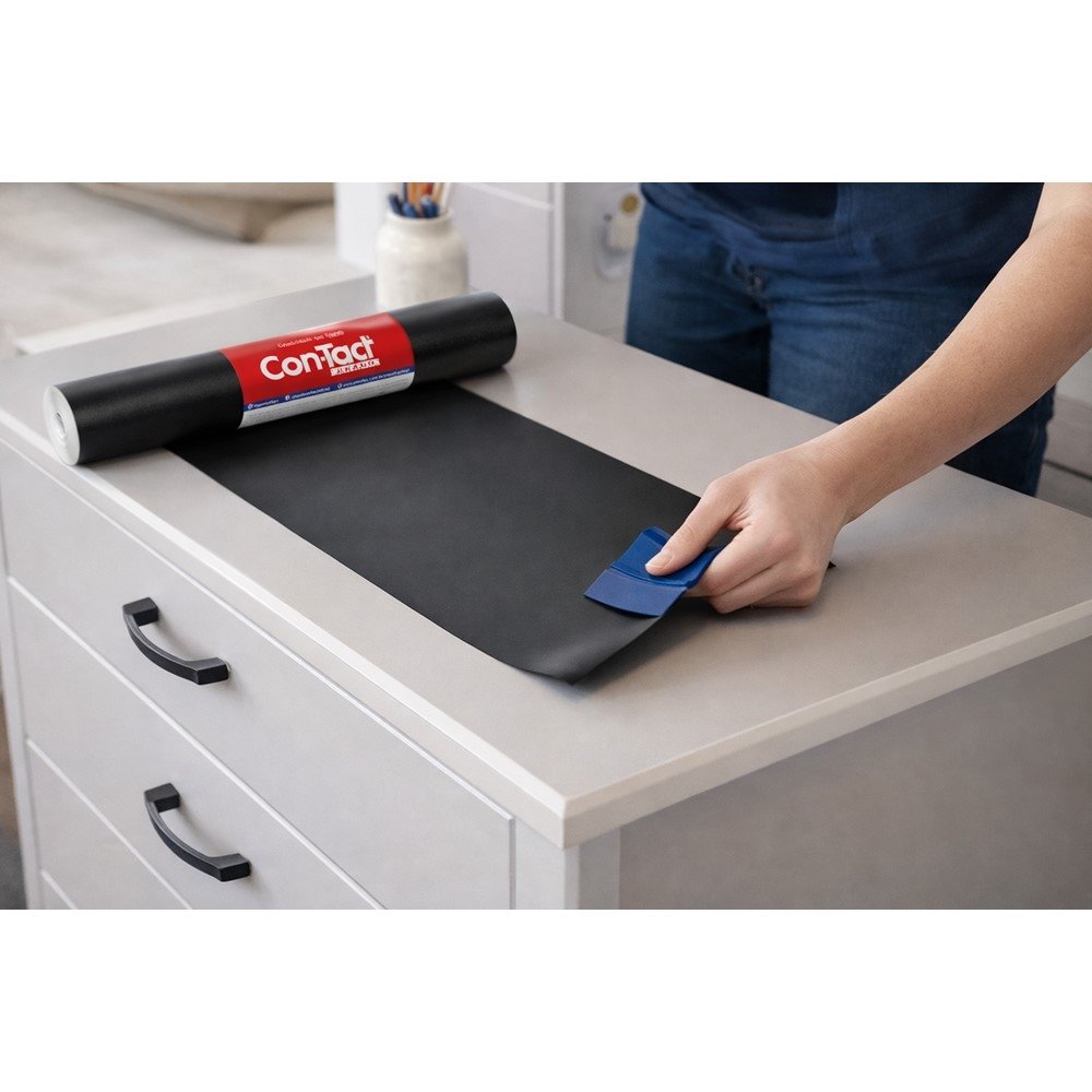 O Plástico Adesivo Con-Tact Preto Fosco é a solução prática para quem deseja transformar móveis e superfícies com rapidez, economia e acabamento sofisticado.