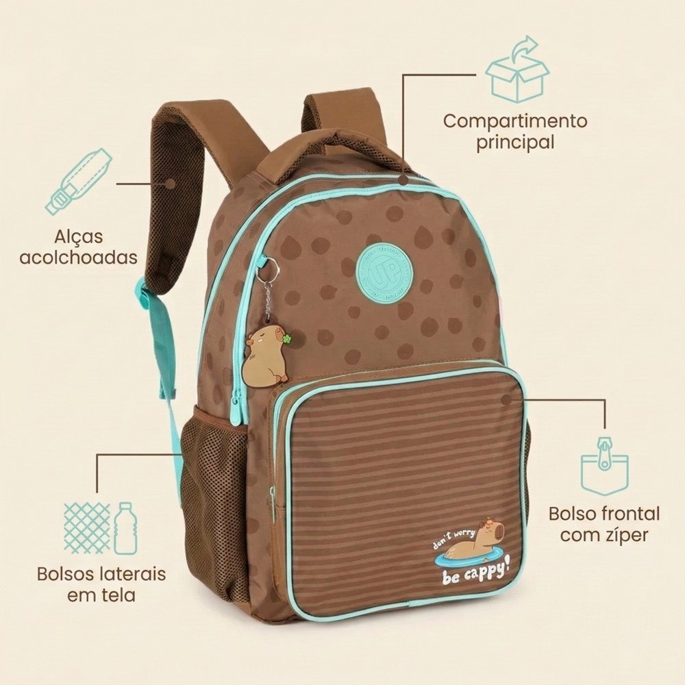 Adicione ao carrinho e leve mais estilo e praticidade para a sua rotina com a Mochila Up4you Capivara Verde.