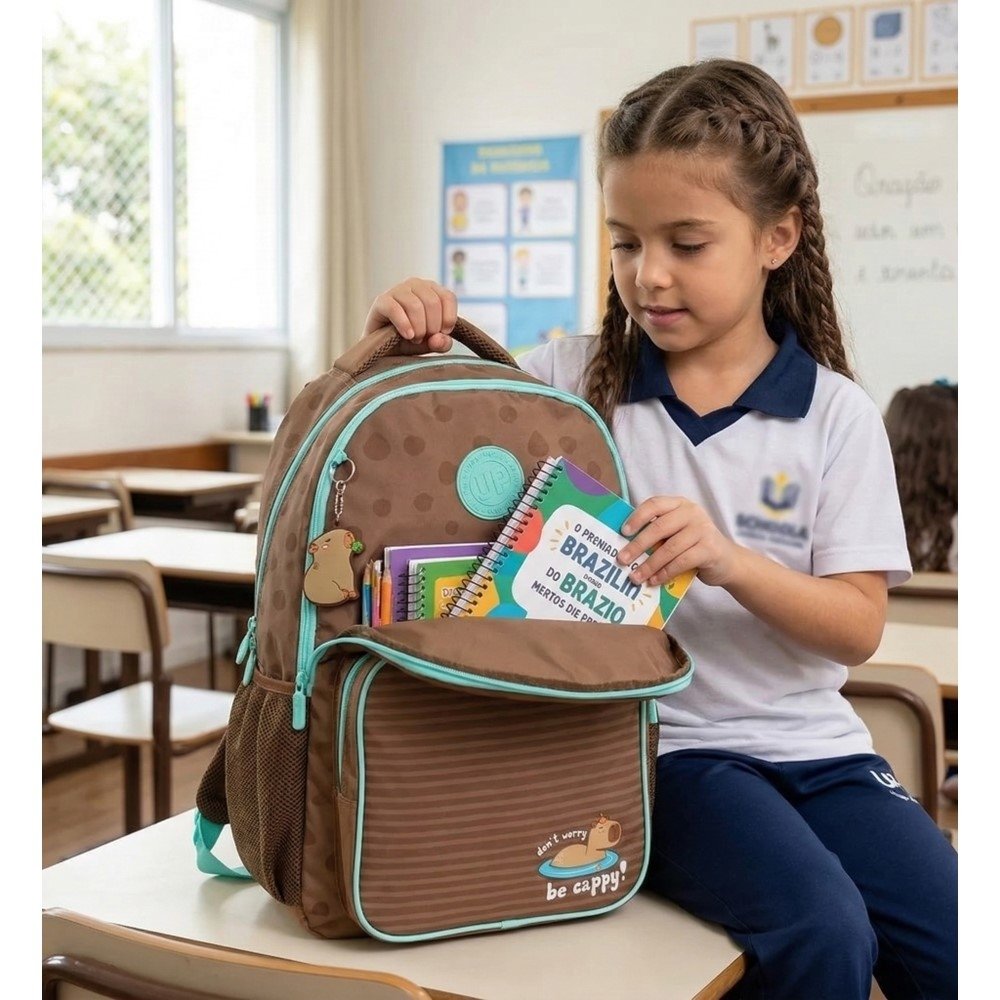 A Mochila Up4you MS49651UP Capivara Verde é a escolha certa para quem quer praticidade no dia a dia sem abrir mão de um visual cheio de personalidade. O tema capivara traz um toque divertido e atual, perfeito para quem gosta de itens que se destacam com leveza - na escola, no passeio ou na rotina.